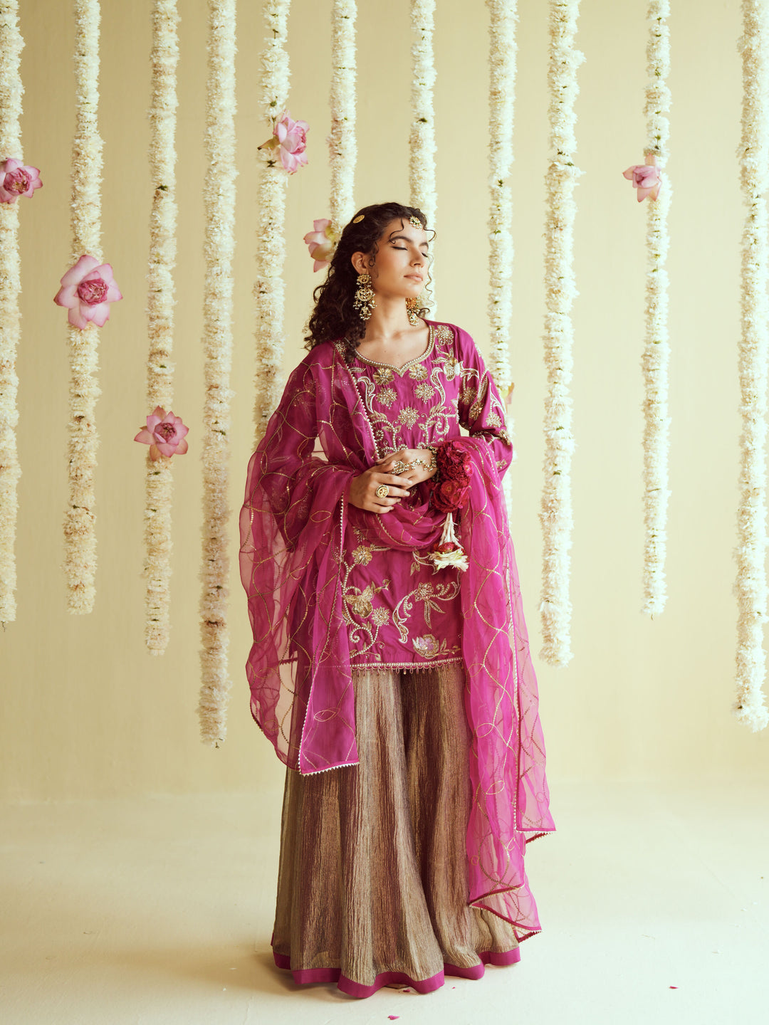 Fuschia Radiance Flowy Sharara Set