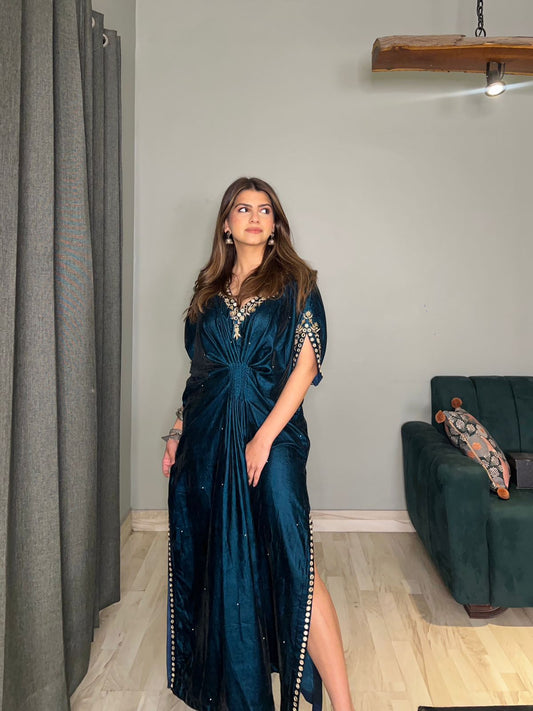 Dusty Teal Velvet Kaftan