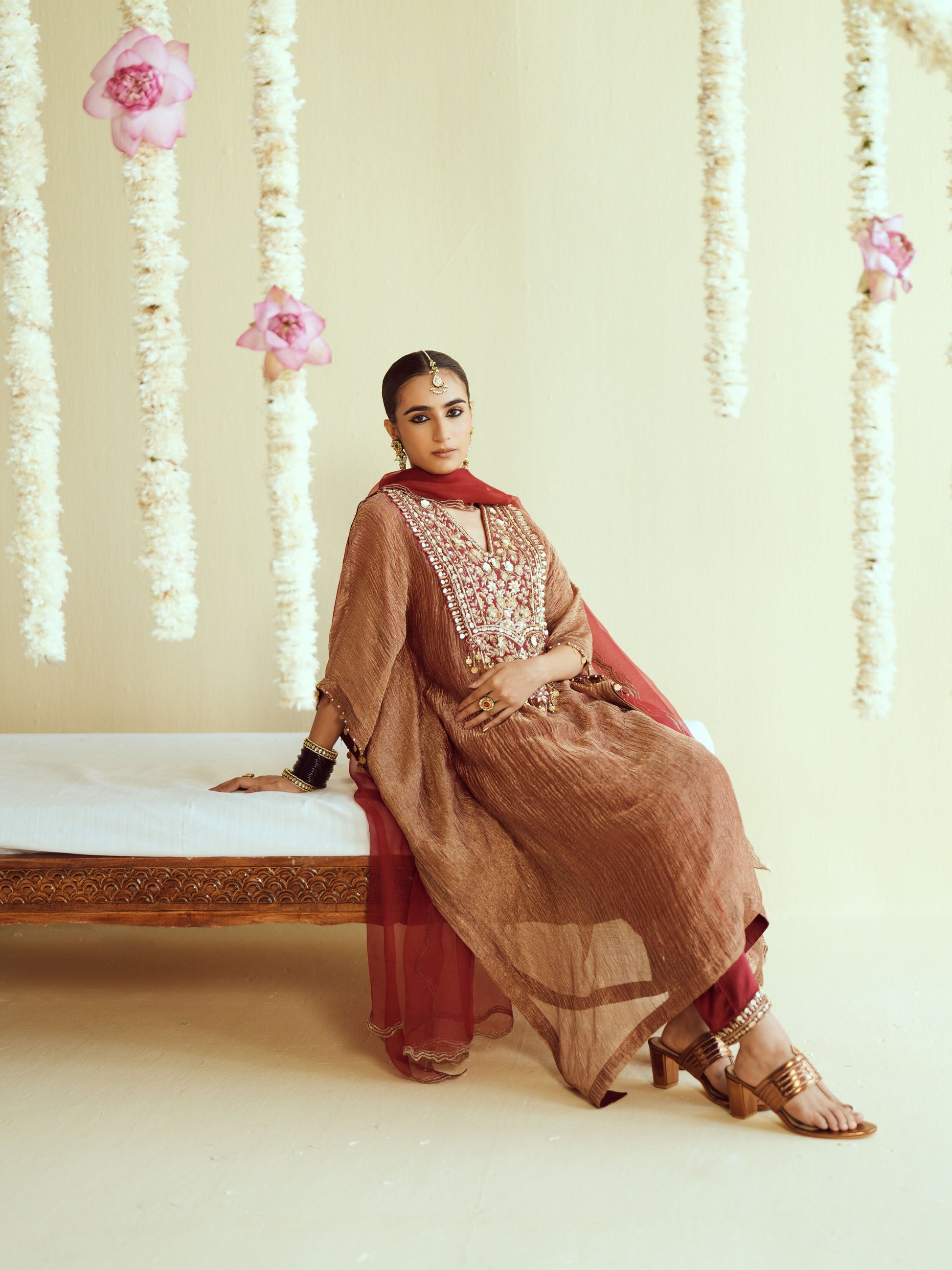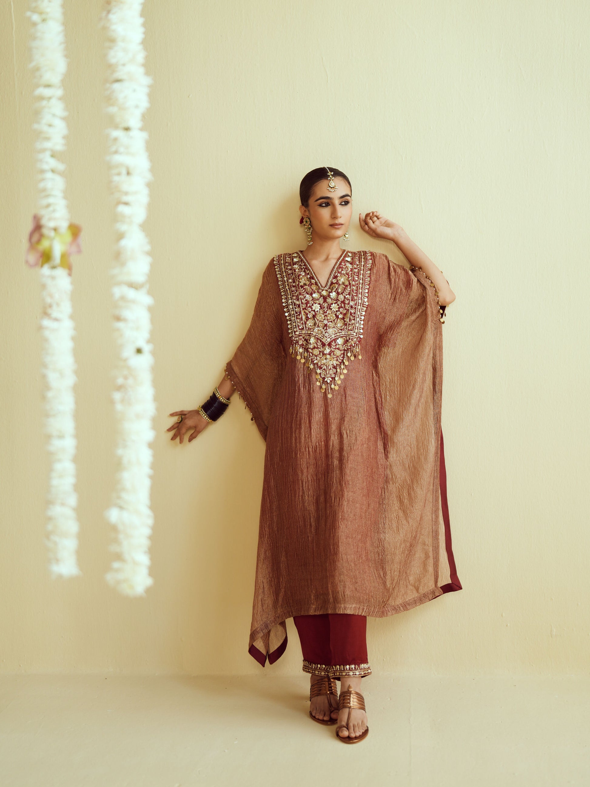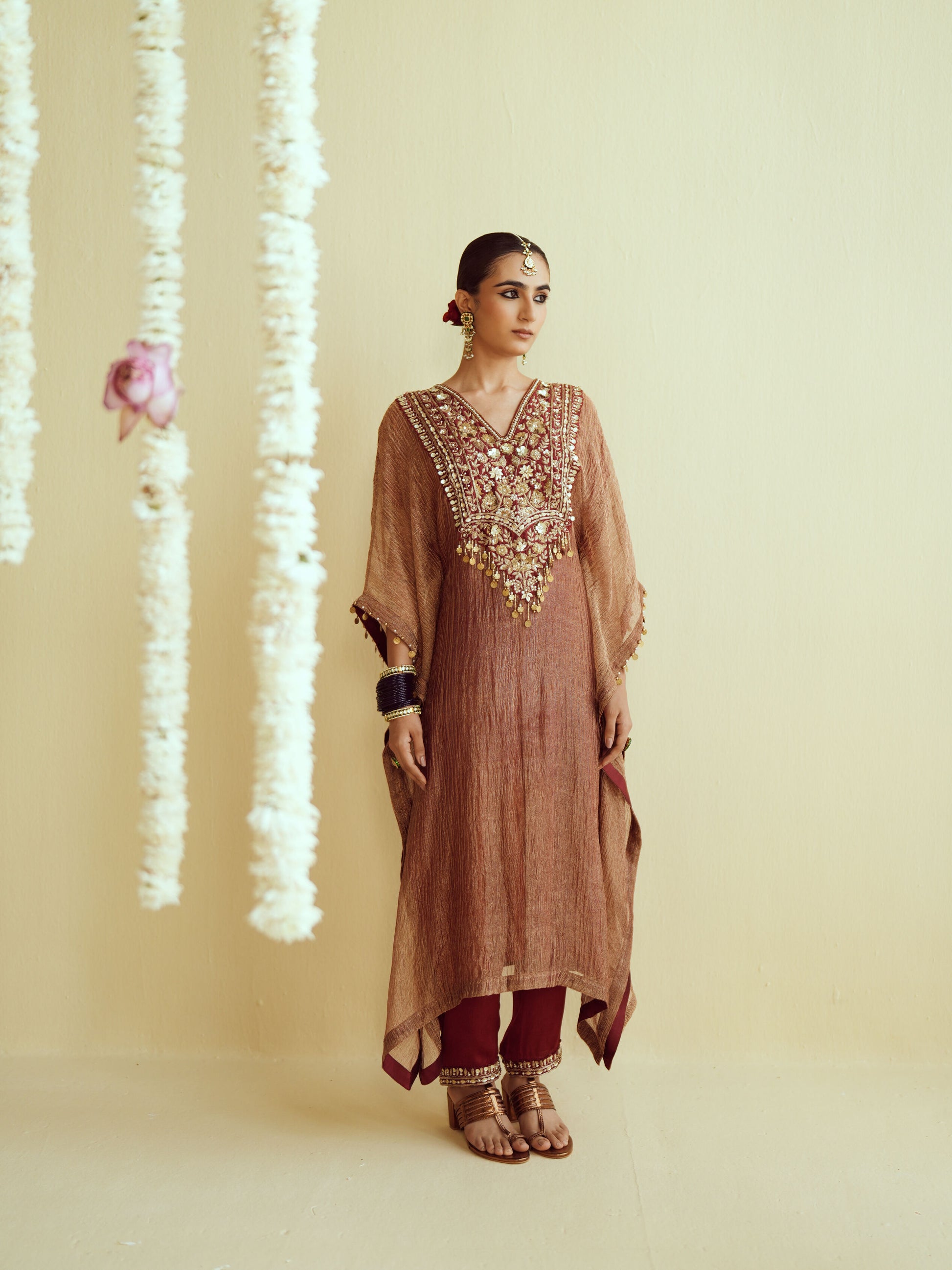 Fabric – Kaftan- Crushed Tissue, Pants- Modal Satin Dupatta- Pure Organza